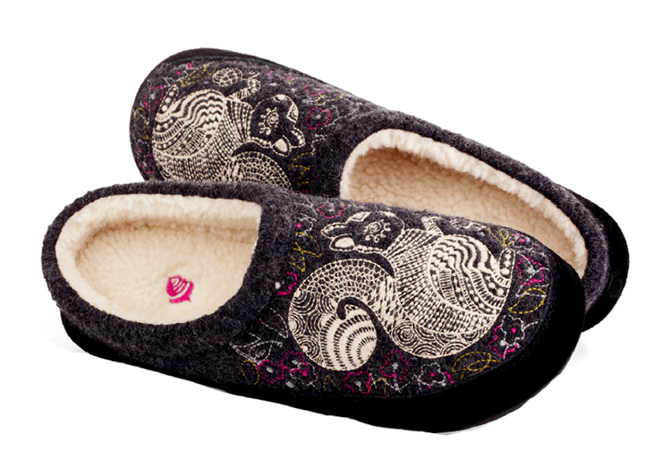 - Boiled wool uppers with Acorn® custom embroidered critter designs.
