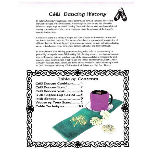 This collection of knitting patterns, inspired by the lively tradition of Céilí dancing, celebrates Irish culture through design. Created by a dancer and knitter moved by her experience at the University of Milwaukee Irish School and Irish Fest, the patterns reflect classic Céilí dance movements and the spirit of community gatherings. The collection includes garments and accessories such as the Céilí Dancer Cardigan, Vest, Scarf, Irish Shrugs, and Coffee Cup Cozies, each crafted with symbolic stitches and Irish heritage in mind.