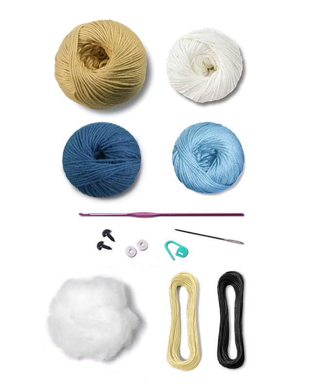 All kits contains: Balls of Amigurumi, Skein of Amigurumi, Crochet Hook, Tapestry Needle, Safety Eye, Stuffing Fiber, Stitch Marker.