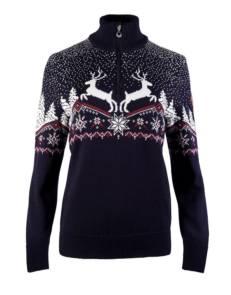 A classic, yet sophisticated Christmas sweater, inspired by the Norwegian Christmas: Reindeer, Christmas trees, falling snow – it’s all there. And in the center, like a Christmas star, the traditional Norwegian eight-petal rose. Made with 100% soft and light merino wool, it’s classy for the indoors, yet toasty for the outdoors. With matching Christmas sweaters for men and kids, there’s only one thing to do: Outfit the family for this year’s Christmas photo!