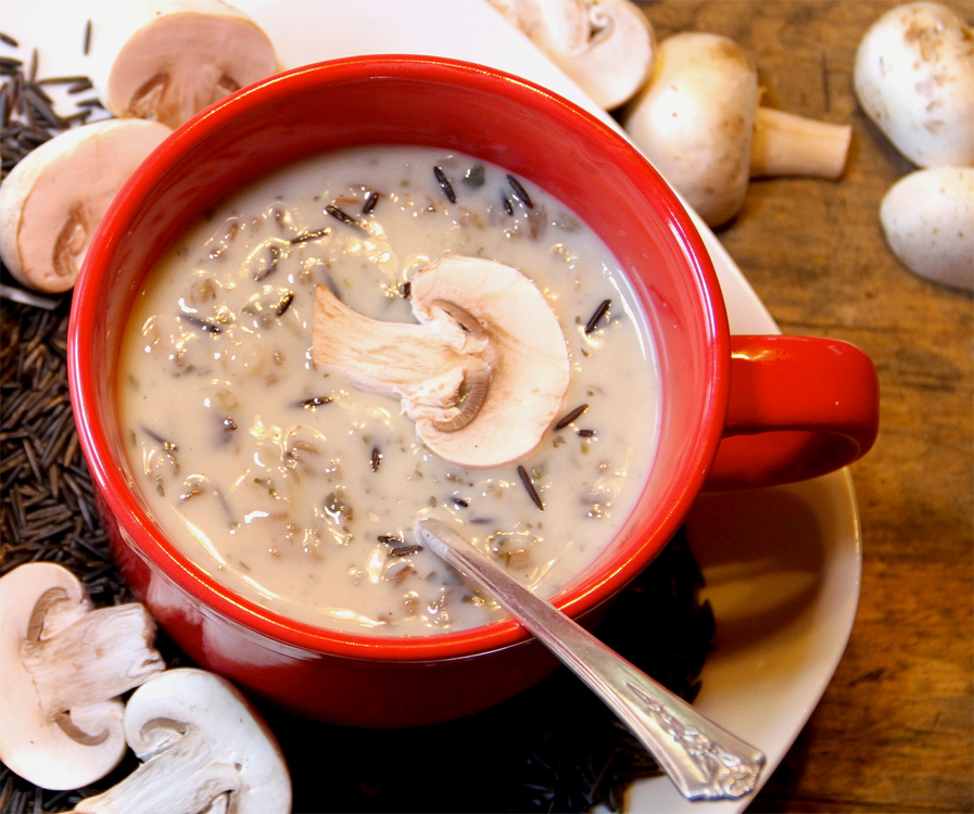 MN grown wild rice, broth (maltodextrin, sea salt, autolyzed yeast extract, natural flavor, onion, celery, parsley, spinach, garlic, carrot, potato flour, soybean oil, xanthan gum, spices, extractive of spices, lecithin), cornstarch, onion, celery, mushrooms.