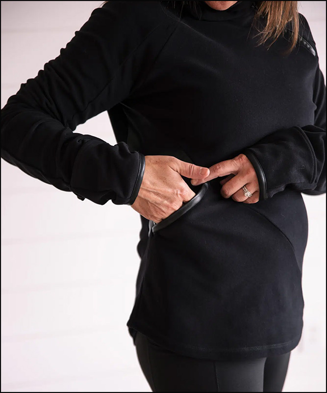 Experience blissful comfort in our Micro Fleece top – the coziest base layer shirt for your winter wearing. Indulge in the softness of microfleece, elegantly accented with faux leather trim for a touch of sophistication. Perfect for transitioning between seasons and activities, the zippered neck opening combines practicality with modern design, making it a must-have addition to your wardrobe.