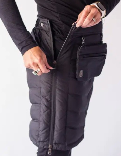 Inspired by and designed for “minnesota” winters, we consider our down skirt/ snow skirt/puffer skirt (whatever you want to call it) “a jacket for your “butt”.