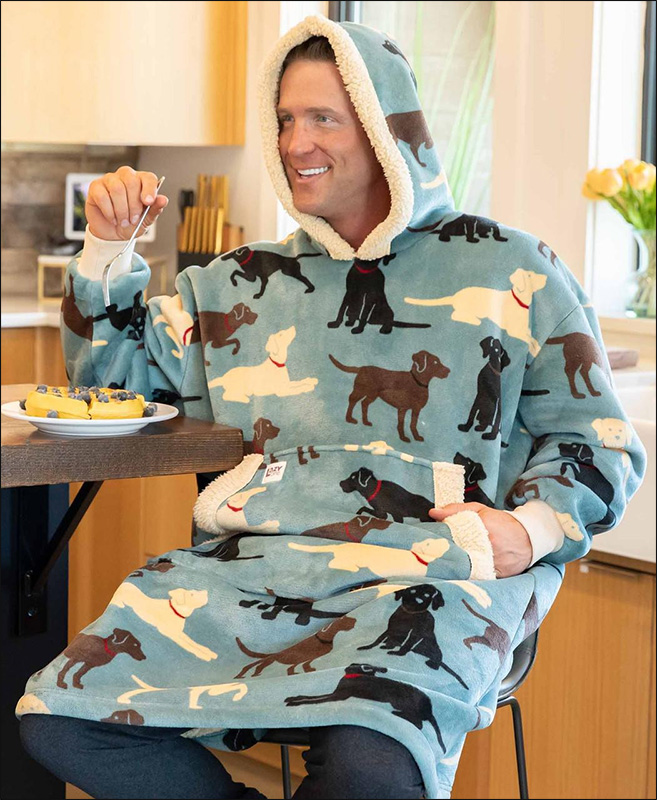 These Lazy one oversized blanket hoodies are meant to last. With a 100% super soft coral fleece inner fabric, this cozy sweatshirt will be your favorite piece in your closet. It also comes preshrunk and features a permanent, no-fade print. Lounge and relax all winter long without getting cold. Our hooded blanket with pockets keeps you warm and ready to snuggle at any moment! Keep toasty night and day with these comfy pajamas. Our extra-long hoodies have a cute, classic design that can be worn any time of the year without going out of style! 100% super soft coral fleece. Machine wash. Imported.