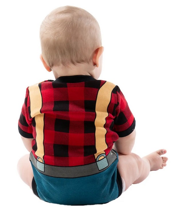 This onesie is so much fun for the little ones, plus who doesn't love a beardless baby lumberjack! The design is on the front and back and just like all of our other creepers, they conveniently snap at the crotch and shoulder!
