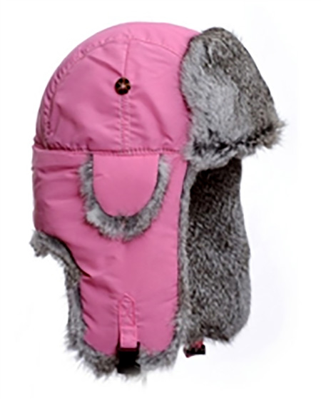 Little Mad Bomber Pink with Real Grey Rabbit Fur