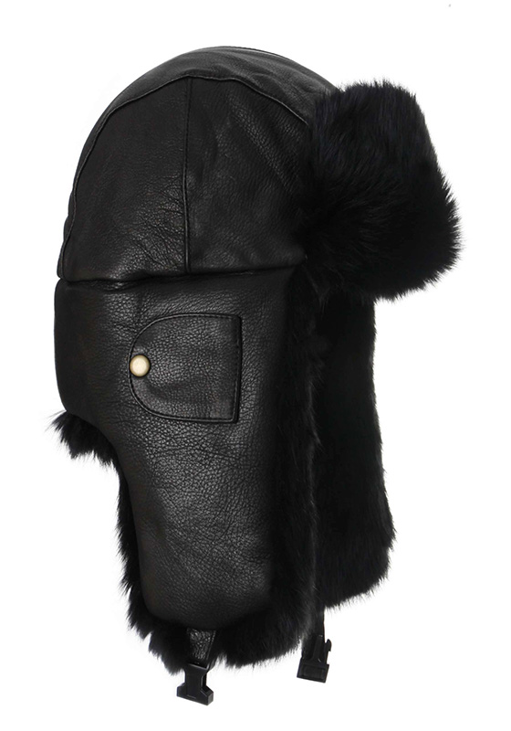 Welcome the Black Leather Bomber with Black Fur into your winter wardrobe, a reinvention of the classic hat with a modern twist. The 100% leather shell adds sophistication, while the natural rabbit trim brings a touch of luxury. Feel the comfort with the recycled quilted lining that ensures your head stays warm in style.