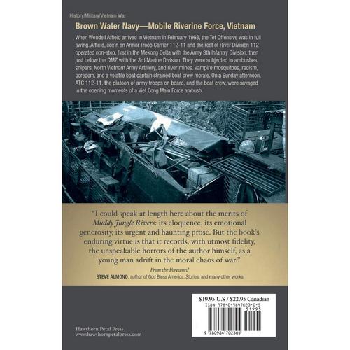 Muddy Jungle Rivers is a close-up look at life on a gunboat during 1968, the bloodiest year of the Vietnam War. It’s the story of a seven-man crew captained by a volatile pro-war enlisted man. Like Philip Caputo’s "A Rumor Of War," this narrative takes the reader into frustration, rage, terror, death, betrayal, and the search for redemption. Muddy Jungle Rivers has 29 chapters, maps, and photographs. Today’s generation watch their peers returning from combat and cannot understand why their loved ones have changed after being blanched in the cauldron of war. In Muddy Jungle Rivers the reader will glimpse the genesis of post traumatic stress disorder (PTSD). Steve Almond wrote the Foreword for Muddy Jungle Rivers.