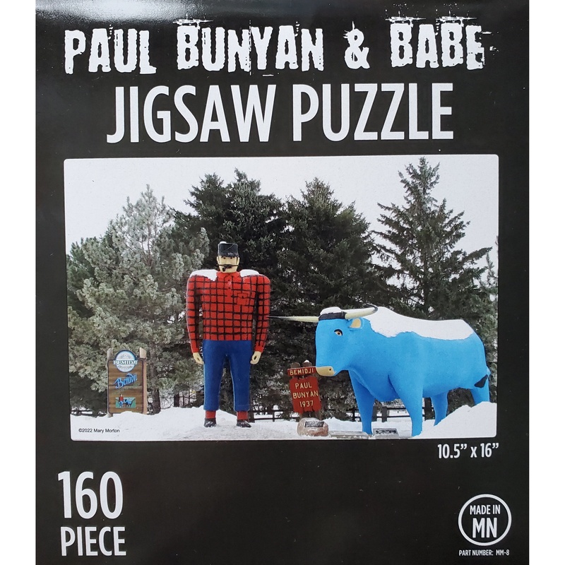 The legends of Paul Bunyan and Babe the Blue Ox have been around since the 1800's. Historians believe that the tall tales are based on a couple of actual lumberjacks. The first stories made it into print in the early 1900's. The statues of Paul and Babe were both built in 1937 in connection with a January Winter Carnival. The 18 foot Paul weighs two and one half tons and stands above five tons of concrete footings. Babe was originally built to be mobile. He was covered with canvas and for two years he was trucked in parades throughout Minnesota. The exhaust from the truck came out his nose and his eyes lit up red when they stepped on the brakes. Babe returned to be cemented down beside his friend Paul. The two figures remain permanent symbols of Bemidji and it's most colorful era of logging and lumberjacks. This roadside attraction has been on the National Register of Historic Places since 1988.