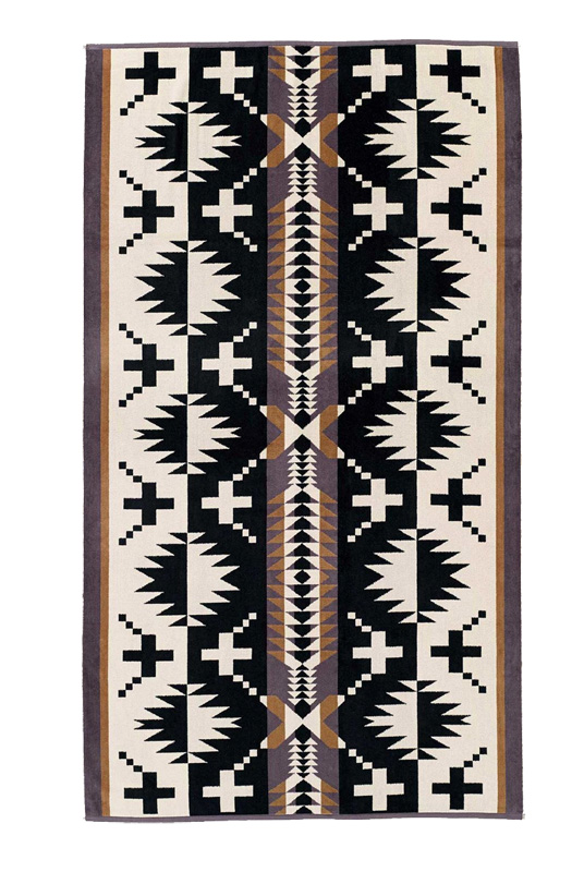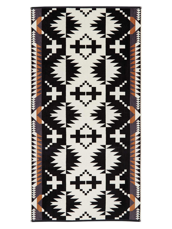 Our popular blanket pattern recreated in an oversized towel for beach, poolside or hot tub—or an instantly luxurious bathroom. Thirsty cotton velour is an ideal canvas for stripes inspired by Mexico’s traditional serape blankets. Sheared on one side for luxurious softness, looped on the other for superior absorption.