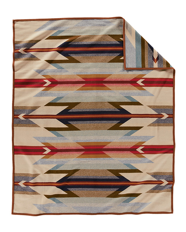 This USA-made blanket reflects the warm, harmonious colors of ancient corn varieties, in a balanced pattern of rows that echo long-ago gardens. Arrows point in two directions: the past and the future. Reverses for two dramatically different looks. Pair with matching sham.