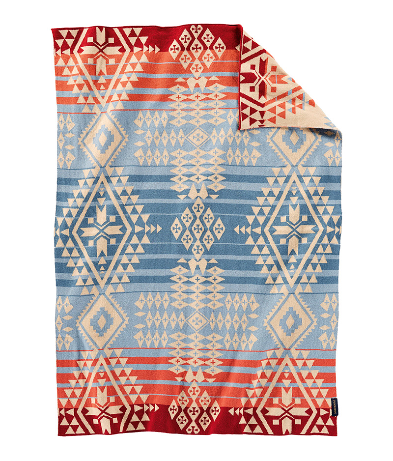 Napped and felt-bound. Machine washable. Made in the USA. 18% cotton, 82% pure virgin wool.