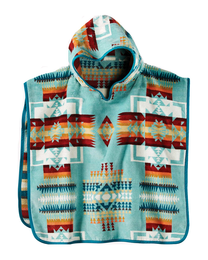 Keep head and shoulders dry and warm after a swim, bath or jump in the lake, Woven in an iconic Pendleton design, These Towels are both stylish and functional, Machine washable, 100% cotton velour with a cotton terry reverse. Imported. Fits ages 8-14.