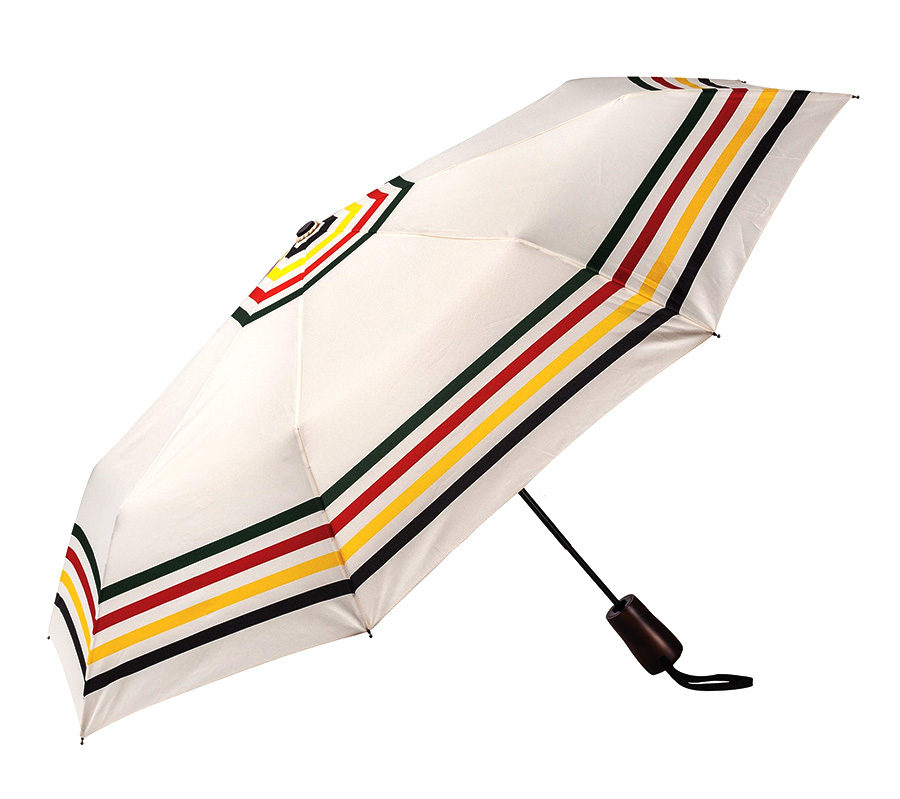 Stay dry under a canopy of our iconic Glacier National Park stripes. Automatic open, with a wooden handle and handy wrist strap. Protective sleeve included.