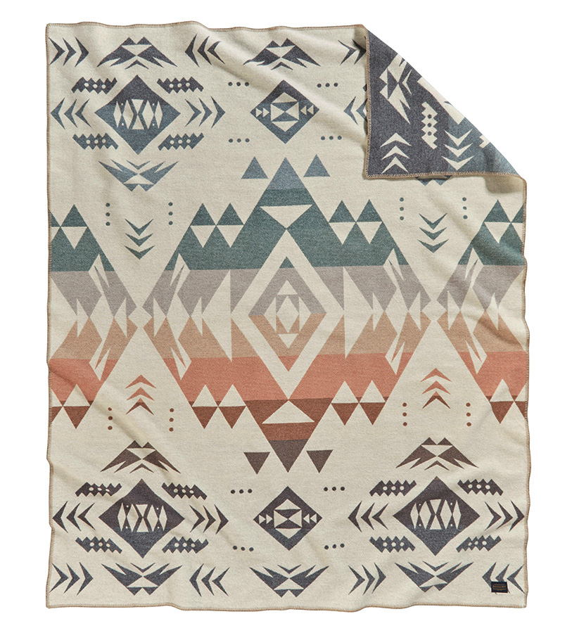 Agate, a banded form of chalcedony, formed billions of years ago in volcanic pockets. In the cooler seasons of the year, storms and waves dislodge agates from gravel beds along the Oregon shoreline. Beachcombers and rock hounds search for stones that range in color from inky black, to vivid fire tones, to rare and valuable blues, to soft greys and misty pinks. In this pattern, striated stones emerge from a sandy background to glow softly under Oregon’s gentle skies. Napped. Dry clean. 82% pure virgin wool, 18% cotton. Made in the USA.