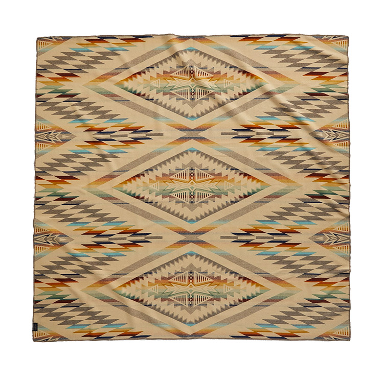 This colorful pattern was inspired by the Summerland Trail in Mt. Rainier National Park, voted Best Wildflower Spot in the USA by 1889 Magazine. Vibrant bands of color capture the wildflowers, waterfalls and mountain views within the park. Crafted from pure virgin wool/cotton, the reversible jacquard has two distinct looks.