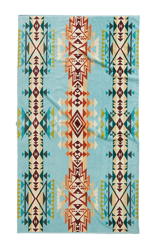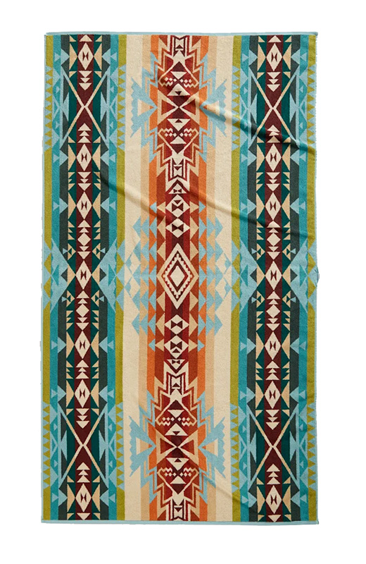 Supersized towel featuring our exclusive Highland Peak pattern, woven of cotton velour in vivid colors that stay true, wash after wash. Sheared on one side for softness, looped on the other for superior absorption. A luxury you'll love for the beach, hot tub or pool. 100% organic cotton. Machine wash. Imported.