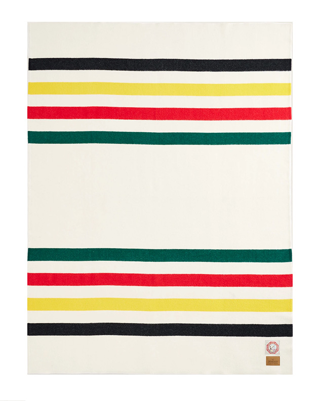 Since the early 1900s, Pendleton Woolen Mills has honored America's National Parks with a collection of distinctive park blankets. Glacier Park National Park Blanket was one of the first. Its historic markings and colors date back to the frontier trading posts. Traders would indicate the weight of the blanket offered in exchange for furs by holding up one finger for each pound. The original blankets incorporated three, four or five black stripes in the design, which indicated the value of the blanket. Colors and variations of the original striped theme have been adapted to reflect distinguishing characteristics of each park and blanket in the collection. National Park Blankets are still woven right here in our Pacific Northwest mills, just as they were nearly 100 years ago.