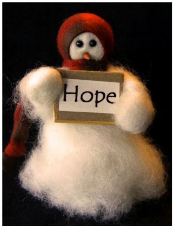 The Wooly® Primitive Snowman has Hope for all good things to come. This collectible snowman figurine makes a unique gift for friends and family, and it is the perfect addition to your own snowman collection for winter décor. All Wooly® Primitive Snowman decorations are made of 100% wool and handcrafted in the United States.