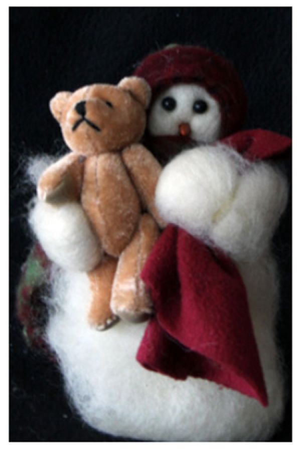 Wooly snowman is ready for bed, grasping a fuzzy teddy bear and favorite blanket. Bedtime would not be complete without these two necessities. This collectible snowman figurine makes a great gift for friends and family, and it is the perfect addition to your own snowman collection or winter décor. All Wooly snowman decorations are made of 100% wool and handcrafted in the United States.