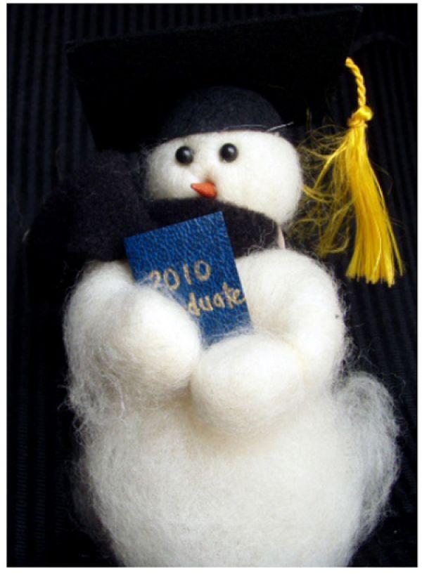It's a proud moment for Wooly snowman (and the decorative snowman's family): graduation. After years of school work, the collectible snowman figurine proudly clutches a graduation certificate, labeled with the year of graduation. Giving the gift of this snowman decoration is a great way to show a graduate that you're proud of their accomplishment. The Wooly snowman figurines are also a great addition to your snowman collection and home décor. All Wooly snowman decorations are made in the United States and handcrafted from 100% wool.
